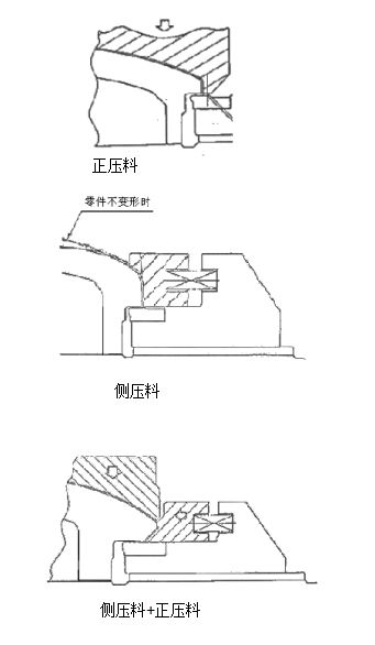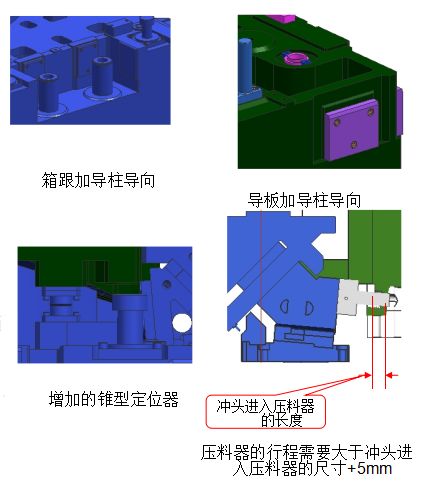 冲压模具侧修边侧冲孔需要注意什么发表时间:2025-11-24 09:14 一、通过截面确定斜楔的安装高度和位置 1)大概确定了冲头的位置和准确的确定了凹模镶套的角度和位置以及防转角度,根据冲头固定座的大小确定该选择斜楔滑块工作面的大小(确定斜楔的型号); 2)斜楔按照在模座上的摆放角度和冲头固定座的位置摆放 ![]() 二、根据模具的实际情况选择冲头固定座的安装方式 从斜楔滑块受力平衡角度考虑,最理想的固定方式是尽量将冲头的受力点控制在斜楔滑块的中心上,特殊情况根据实际情况布置固定座的安装方式;根据冲头固定座的固定角度就确定了斜楔在模具座上的平面大概位置; ![]() ![]() 四、标准斜楔模设计时,由于斜楔的行程已经固定,所以要考虑以下事项: 普通倾斜斜楔: 由于工作部分是固定在下模上,所以要考虑制件能够顺利的送取;其行程要保证不小于凸缘边缘的宽度+凸缘斜楔修边或者冲孔、翻边的距离+20~30mm(注意:如果是自动化冲压为30mm,人工操作时应该为50mm) 吊装斜楔滑块行程: 凸缘到斜楔修边、冲孔或者翻边的距离+20mm; ![]() 吊装斜楔需要考虑在滑块上安装的工作组件(冲头、侧修刀块、翻边刀块)是否影响压料芯的装配和拆卸;并且在斜楔与压料芯之间是否有足够的空间研磨; 1.废料过孔尽可能开大; 2.有的时候为了防止废料堵塞,侧冲孔的废料需要增加顶料装置; 3.铸件上要设计废料滑板过孔要充分考虑废料如果发生旋转后的最大尺寸的宽度; 4.如果废料过长,可以考虑增加废料刀,达到废料滑出顺畅和模具强度的提高; 5.在下列情况下要使用弹性顶料销凸(凹)模: 5.1.为了使废料一片一片的滑落; 5.2想控制废料下落时的状态; 6.如果废料存在反弹时: 6.1.刀口入模量要大; 6.2.需要安装废料顶出装置; 7.下列情况需要增加废料导料装置: 7.1.废料排除侧没有空位,必须将其转化为直角方向垂直落下,垂直孔径最小是冲孔直径的2倍; 7.2.如果是两侧同时冲孔时需要增加分料销; ![]() 六、标准斜楔模的压料器的分类: 压料器对制件的定位、变形起防止作用,根据起形状、动作方向个数等可以划分为三种类型: 1.1上压料芯 其优点为:压紧力比较大,不用担心零 件的变形;接近垂直壁面且靠近侧壁端面,用上压料芯分离; 1.2斜楔侧压料芯 1.3侧压料和正压料共用 侧压料的压紧力不足; 零件不稳定; 正压料要比侧压料提前10mm压紧制件; ![]() 斜楔有销定位和键定位两种; 一侧侧修边、翻边,料厚比较厚需要有防侧向力的措施; ![]() 防止侧向力的措施和形式: 增加导向装置; ![]() 斜楔模导向要求比较高,特别是有侧冲孔,侧修边,因为修边冲孔的间隙都很小,所以这样的模具一般都是导柱加箱跟的导向模式; 压料芯一般是用导板导向,如果有特殊要求的可以增加导柱导向(根据客户具体要求设计); 压料芯和下模之间也可以设计增加锥型定位器,可以提高压料器的导向精度; 压料器的行程必须大于冲头进入压料器的长度,否则将导致冲头折断 ![]() ![]()